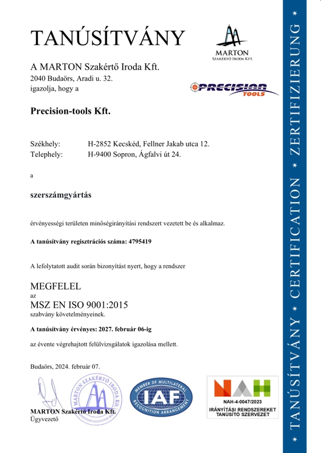 - Precíziós megmunkálás